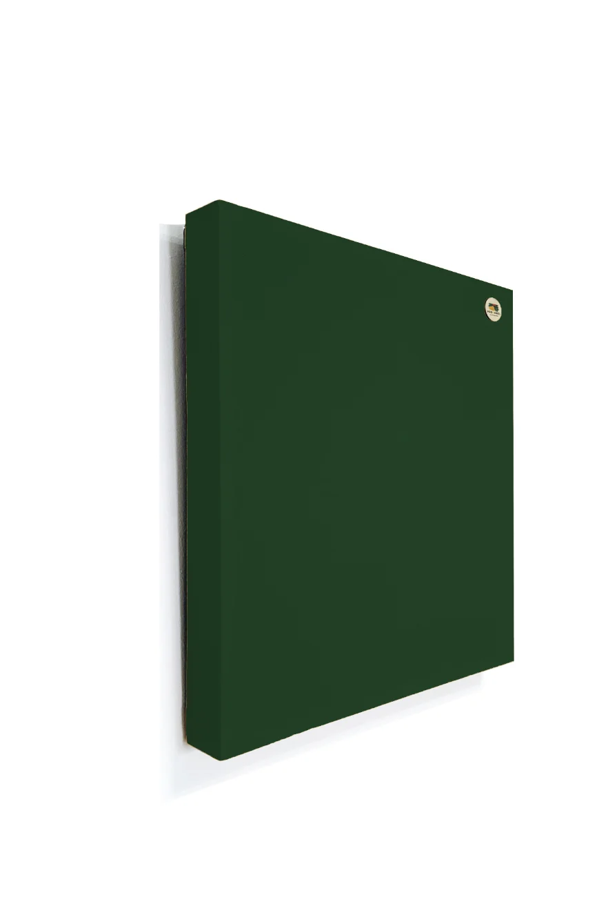 Para su fabricación, utilizamos marco de madera, material poroso de 40mm de grosor obtenido a partir de fibras textiles recicladas y tela acústica con gran variedad de colores.